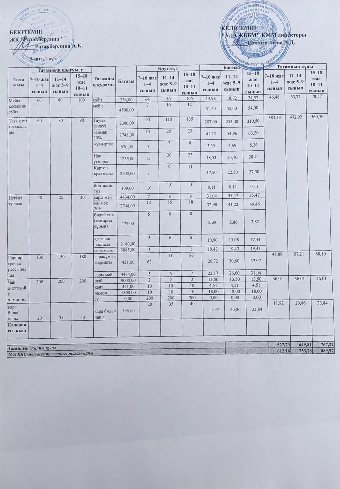 Күнделікті тегін тамақтану мәзірі (19.01.2026)