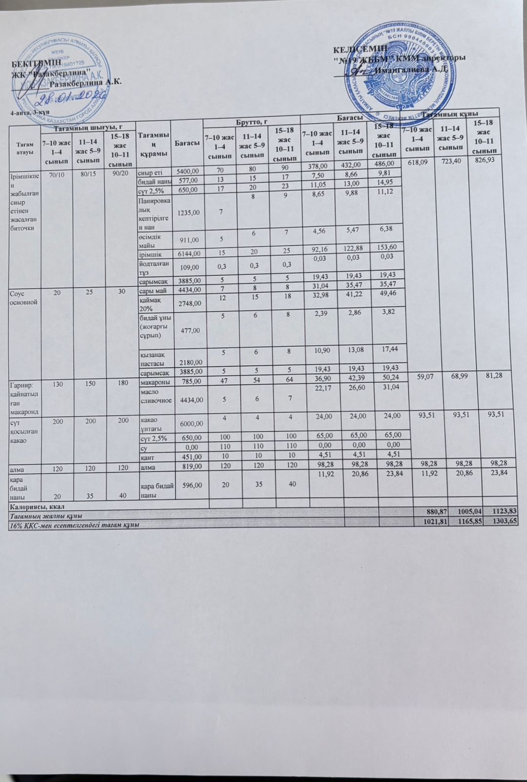 » Күнделікті тегін тамақтану мәзірі (28.01.2026)